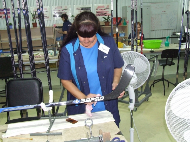 На заводе площадью в два гектара работают около 70 человек. В первые месяцы планируется выпускать по 1000 клюшек в месяц, но уже в следующем году собираются увеличить производство до 40 тысяч в год. Надеются увеличить и штат работников. Трудятся в основном челнинцы. Изготавливаются клюшки из особо прочного углеволокна. В цехе по выпуску работают одни женщины. «Здесь они собирают бумажные детали, клеют. Нужно проявлять аккуратность и терпение, это лучше получается у женщин», - объяснил нашему корреспонденту мужчина-мастер.