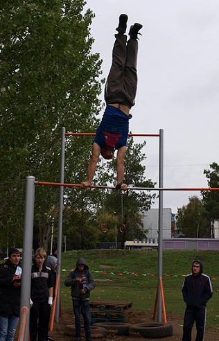 Сегодня в Набережных Челнах прошел третий ежегодный фестиваль уличных культур Maxiart Урмания. Соревнования шли под практически не прекращающимся дождем, поэтому программу сильно поджали. А соревнования по воркауту перенесли в спортзал одной из школ.