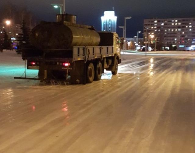На площади Азатлык заливают еще один каток в 3 тысячи квадратных метров
