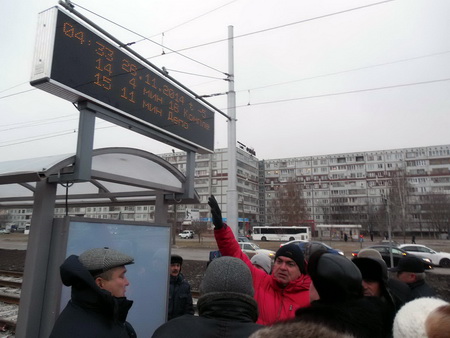 Погода сегодня выдалась ветреная. И собравшиеся на новой трамвайной остановке чиновники в ожидании градоначальника в полной мере почувствовали, что этот продуваемый с трех сторон остановочный павильон сделан не для людей. На это же обратил их внимание и подошедший Наиль Магдеев. Он поручил сделать так, чтобы павильон защищал ожидающих трамвай от ветра. Здесь же на остановочном павильоне руководителю исполкома продемонстрировали информационное табло.