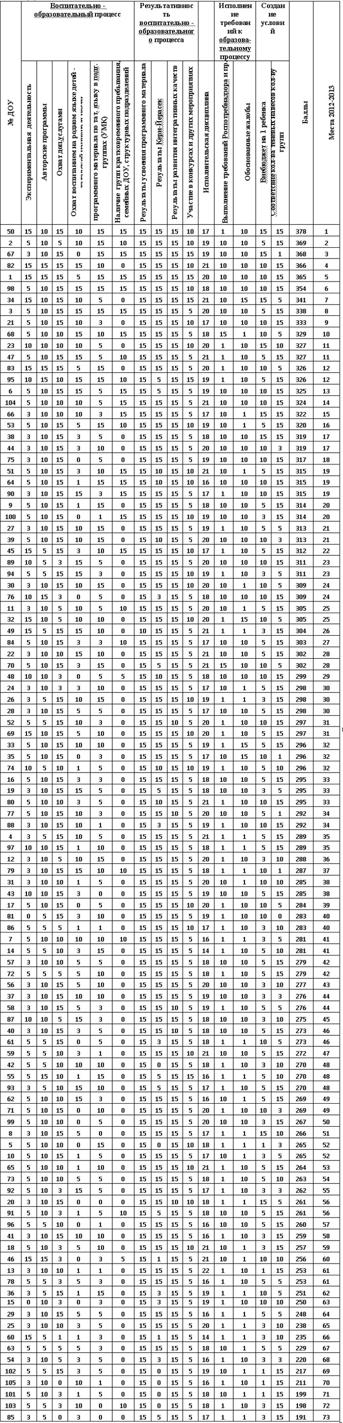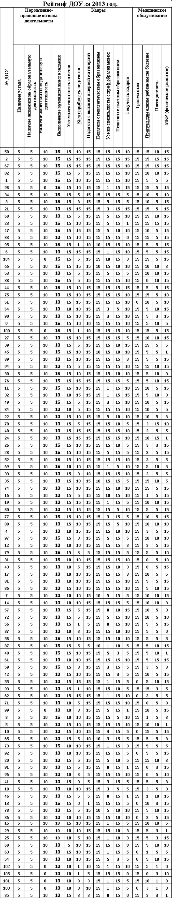 Рейтинг ДОУ за 2013 год.