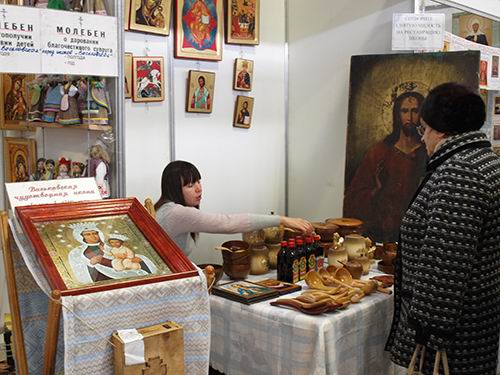 В Челнах это уже вторая православная ярмарка. Как и в первый раз, на ярмарке огромный выбор меда, кагора. За одним из прилавков красуется бочонок с вином отца Герасима и другие крепкие напитки, вроде грузинской чачи и казацкой медовухи. На выставке много книг, крестиков, свечей, икон, товаров народных промыслов. Свои товары привезли две сотни церковных и светских организаций из России, Украины, Беларуси, Греции, Израиля.
