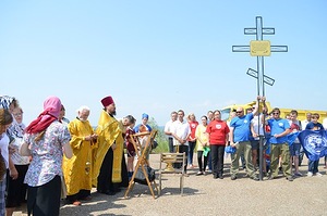 Справка: Проект «Святыни Татарстана» - инициатива чистопольского отделения Русского географического общества, получивший два гранта (от православной церкви и Общественной палаты) на реализацию. Организаторы располагают старинными картами с точными координатами святых мест, благодаря которым определяются места установки памятных знаков (мемориальных табличек, поклонных крестов, стел) на территории разрушенных, затопленных, оставленных без присмотра церквей и мечетей. Проект был предложен на рассмотрение высшему духовенству республики Татарстан: митрополиту Казанскому и Татарстанскому Анастасию и муфтию Татарстана Илдусу Файзову, и получил благословение. Первая акция проекта прошла 3 июля 2012 года в селе Мурзиха. На территории бывшей переправы в Мурзихе состоялась установка поклонного креста и мемориальной таблички в память о деревянной однопрестольной Богородице-Рождественской церкви, построенной в 1885 году. Храм был закрыт и разрушен в 1938 году, в 1957-м затоплен при строительстве Куйбышевского водохранилища.