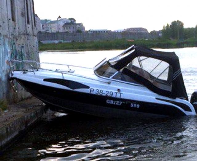 Четырехместный катер «Гризли 580» находится на штрафстоянке. Судно отличается хорошей управляемостью и манёвренностью. Его стоимость в полной комплектации может достигать одного миллиона рублей.