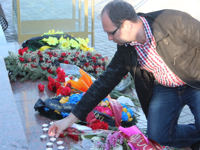 Сегодня у Вечного огня челнинцы почтили память погибших в Одессе, Славянске и Краматорске. Напомним, что в пятницу кровавые беспорядки в Одессе завершились десятками смертей. Акцию, которая была намечена на 18 часов, предложили местные активисты в соцсетях. Люди приходили раньше установленного времени, оставляя цветы. «Как только узнали, что в Челнах почтут память погибших в Одессе, то сразу решились прийти. Очень жаль людей. Думаю, что это преступление против своего народа», - говорит одна из челнинок. В 18 часов у Вечного огня собрались около 10 горожан с гвоздиками. После возложения цветов, они зажгли поминальные свечи. «Понимаете, можно вести политическую борьбу различными средствами, но всему есть предел – сжигать людей недопустимо», - говорит один из инициаторов идеи Илья Князев. По словам активистов, они ожидали большего количества людей, хотя и не привлекали к участию городские организации.