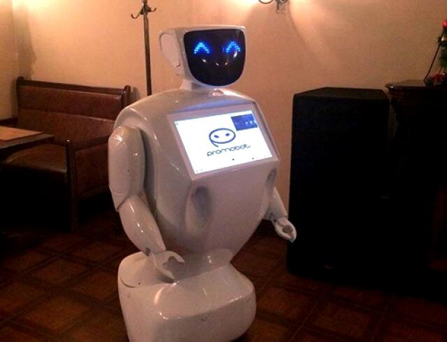 В октябре этого года компания "Промобот" договорилась о продаже 35 своих сервисных роботов. Работают они без подзарядки более 8 часов, а когда потребуется - сами отправляется к розетке. "Promobot" может двигать руками, наклонять корпус, поворачивать голову, провожать человека до необходимого места, запоминать лица, отвечать на вопросы, читать лекции, демонстрировать видеоматериалы, а также может принимать оплату у клиентов.