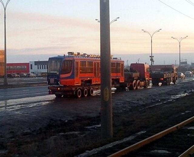 В Набережные Челны привезли шестой новый трамвай, остальные четыре задерживаются