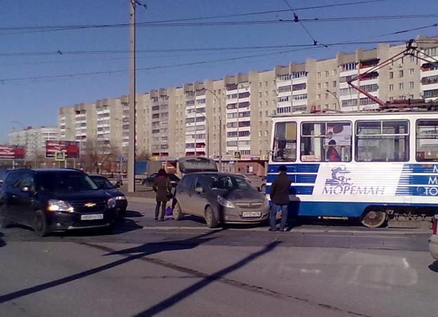 В Набережных Челнах столкнулись автомобиль и трамвай