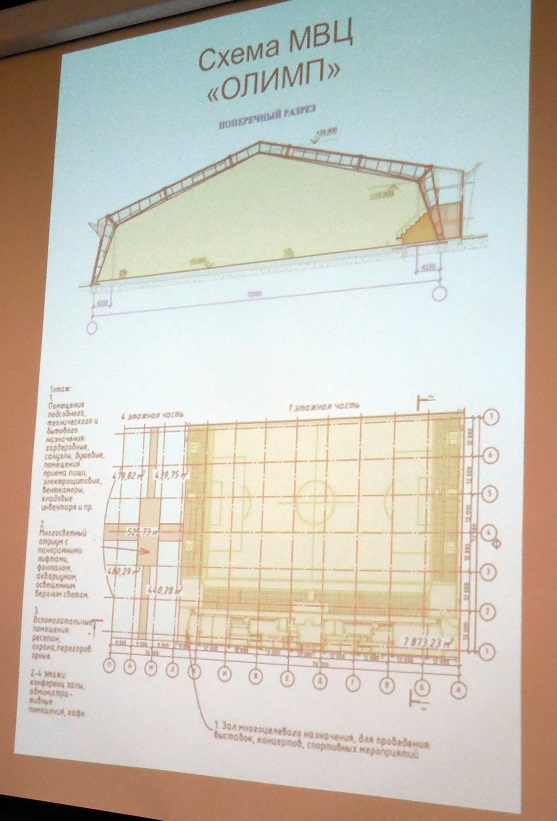 Параллельно с проектными работами в настоящее время заканчивается отделка уже имевшихся ранее здесь каркасов двух зданий - это будут крытые выставочные площади. Рядом поднимается каркас здания под офисные помещения - это вторая очередь. Также в рамках второй очереди будет построен большой выставочный павильон. Но по рекомендации руководства города это будет не просто ангар, а современный многофункциональный зал, где можно будет проводить не только выставки, но и концерты, спортивные состязания и другие массовые мероприятия. Здесь предуматривается хорошая аккустика, выдвижная сцена и 1500-2000 зрительских мест.