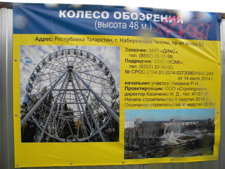 Наиль Магдеев пообещал горожанам, что в и парке Победы повяится новое колесо обозрения. Его монтажом займется ООО «Градостроительная Инженерная Компания» из Уфы. Колесо в Новом городе будет высотой 48 метров - на 8 метров выше, чем его аналог в парке культуры и отдыха поселка ГЭС.