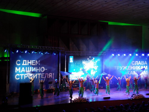 День машиностроителя камазовцы отпраздновали в Органном зале, перед которым в этот день были представлены несколько автомобилей из нового модельного ряда. А на сцене показывали кинохронику, документальные кадры сегодняшнего дня и выступления творческих коллективов города Набережные Челны.