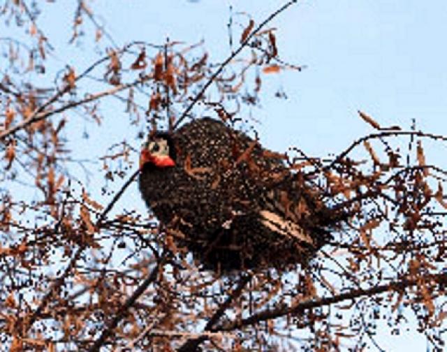 Орнитолога и заведующего музеем природы Национального парка "Нижняя Кама" Ринура Бекмансурова вызвали на улицу Нефтяников в городе Елабуга. Как оказалось, местные жители позвонили пожарным и сообщили им о том, что возле их дома сидит на дереве глухарь и замерзает. Орнитолог сразу определил, что "глухарь" на самом деле является домашней птицей цесаркой, которая, видимо, сбежала с чьего-то частного подворья. Достать птицу с дерева Ринуру не удалось. Он очень надеется, что это сообщение поможет найти хозяина цесарки.