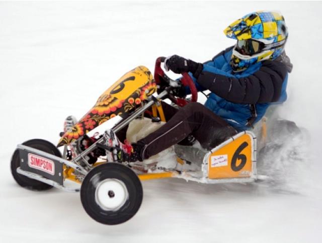 Скованная льдом река Кама служит для развлечения не только для любителей подледной рыбалки, но и для кайтсерфингистов и картингистов. Учащийся гимназии №76 Алексей Климов устроил по льду Камы покатушки на своем карте: