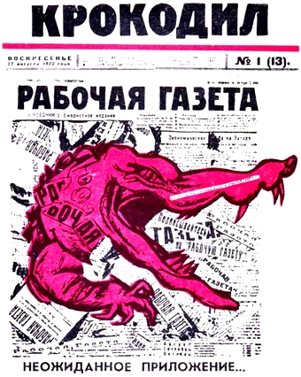 * В 1922 году вышел первый номер сатирического журнала «Крокодил». Изначально журнал выходил как приложение к газете «Рабочий» и назывался, как и газета. С 13-го номера журнал получил своё сегодняшнее имя. Первые два выпуска были почти целиком посвящены процессу над эсерами, проходившем в Москве.
