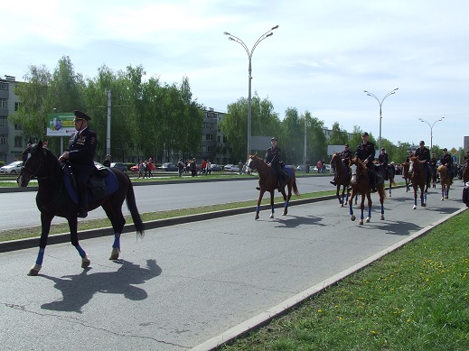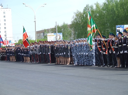 В праздничном параде приняли участие около 1,5 тысяч сотрудников силовых структур, ветеранов боевых действий в Афганистане и на Северном Кавказе, кадетов, студентов и представителей военно-патриотических клубов. Закрывали шествие отряд конной полиции и военная техника, преимущественно изготовленная на «КАМАЗе»: броневики «Рысь» и «Тайфун», военные грузовики семейства «Мустанг». Замыкал парад спортивный автомобиль команды "КАМАЗ-мастер".