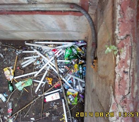 Виктор Я.: "Несанкционированный сброс люминесцентных ламп под указателем адреса дома (39/10)"
