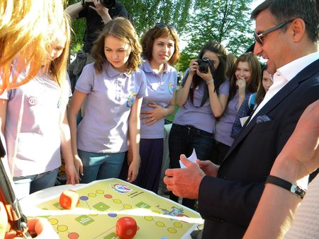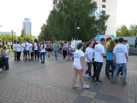 Общественных организаций в Набережных Челнах насчитывается более 55 — это почти 15 000 участников. И пока те, кто по-младше, готовились к торжественной линейке, те, кто по-старше, уже образовали линейки менее торжественные и формальные - праздник стартовал на бульваре Энтузиастов, где в большой коридор выстроились представители вузов, студенческих и школьных общественных организаций, занимающихся творчеством, добровольческой деятельностью. В разгар праздника бульвар посетил мэр города, совершив традиционный обход организаций. «Хотите сыграть в игру? - прозвучало предложение от одной из них, - киньте кости!» Василь Гаязович с улыбкой отказался, мол, в азартные игры не играю. Девушка кинула за него, и выпало число «3». Шагнув фишкой по картонному полю игры, девушка зачитала задание для мэра: назовите самое большое доброе дело, которое вы сделали за последнюю неделю. Мэр рассказал: «Мы определили список руководителей городских предприятий, которых 2 июня я пригласил на благотворительный концерт в Органный зал — я подписал 700 пригласительных. Мы надеемся собрать более 1 млн рублей и направить их в помощь больным детям».