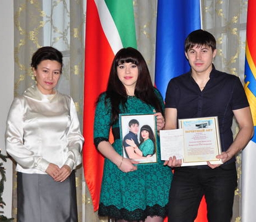 Дворец торжеств автограда предлагает всем влюбленным выказать в торжественной обстановке намерение жениться, проведя обряд помолвки. Вчера этой возможностью воспользовались Азгат и Алия - новоиспеченный жених по давней традиции в знак своей любви преподнес невесте обручальное кольцо. Молодой паре, чья регистрация брака намечена на 14 февраля, вручили на память об этом событии почетный акт о помолвке и фотопортрет.
