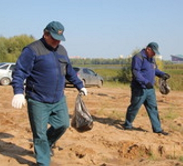 Инспекторы ГИМС очищают от мусора берег реки Камы