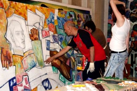 Идея практики в Старом Аракчино родилась, когда Ильдар Ханов приезжал в Челны открывать свою выставку. Ректор КИИД предложила, Ханов с радостью согласился: строительство храма всех религий, а это огромный комплекс, ведется силами самого архитектора и его добровольных помощников. Помогают кто чем может: деньгами, стройматериалами, собственным трудом. Желающие с отделения «Промышленный дизайн» работали на кладке, делали из смальты (мозаичной плитки, которая используется и на фонтанах на бульваре) наружное панно. Жили в самом храме. По ночам вместе с мастером писали картины — части 300-метрового панно, посвященного истории Татарстана. «Все влюбленные в него приехали», - говорит ректор института Эльмира Ахметшина. На следующий год студентов вновь ждут в Аракчино.