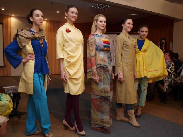 Сумела удивить всех автор детской коллекции Р. Шавалиева. Она учла все моменты, которые важны для любителей кутать малышей: теплые штанишки, шерстяные жилетки. Но ее модели в гамашах с начесом и валяных душегрейках выглядят фантастически стильно! Ирина Крутикова высоко оценила эту работу.
