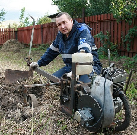 Иршат Мубаракшин – мастер на все руки, его хобби – изготовление приборов, облегчающих жизнь. Сам он признается, что новый агрегат, прозванный «Пахарем», подглядел у своего босса, а тот купил его в Кировской области. Аппарат состоит из двигателя и плуга. Принцип работы таков: агрегат устанавливается на одном конце огорода, а плуг – на другом. Притяжение друг к другу происходит с помощью стального троса, и земля оказывается вскопанной. Нужно всего-то идти рядом с плугом, чтобы он не наклонялся на ухабах. Как только плуг доходит до агрегата, то двигатель переставляют на следующий ряд, а плуг тащат вхолостую на исходное положение. С помощью «Пахаря» можно и землю перекапывать, и картошку садить, и выкапывать ее. На четыре сотки уходит полчаса.