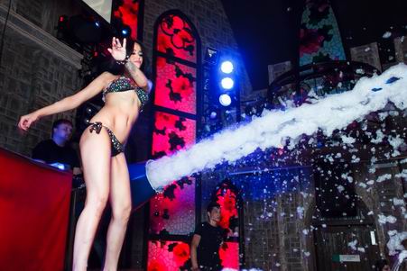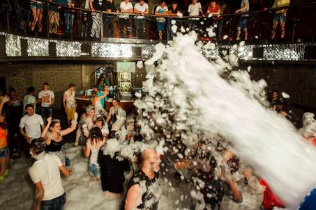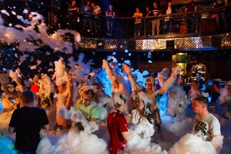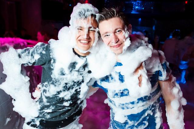 За ночь в народ ушли тонны пены, сухим с танцпола никто не ушел. Поэтому за полночь насквозь промокших гостей отпаивали горячим чаем за счет клуба.