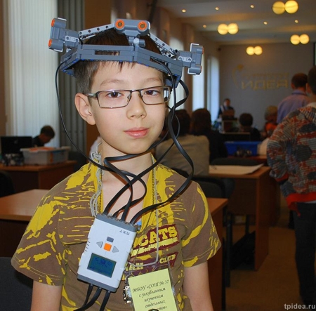 1-е место досталось челнинской школе №37 с углубленным изучением отдельных предметов. Ее представитель - 10-летний Артур Лукъянов продемонстрировал первый в мире действующий прототип шлема для слабовидящих и незрячих людей, собранный и запрограммированный на конструкторе Lego. фото2