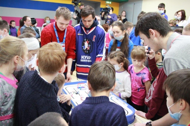 Актеры сериала "Молодежка" и хоккеисты МХЛ пообщались с пациентами КДМЦ