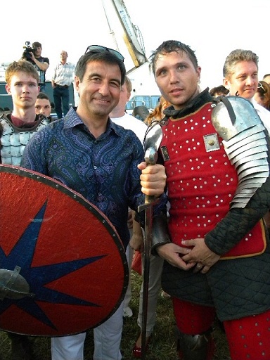 К семи вечера на набережной появился Василь Шайхразиев. К празднику мэр нарядился в белые брюки и фиолетовую шелковую рубашку с этническим узором. Он посетил все заметные точки праздника. На турник, как в прошлом году, не взобрался, зато от души поколотил боксерскую грушу и провел массовую зарядку, которая войдет в книгу рекордов Набережных Челнов Челнов. Не отказывал челнинцам ни в автографе, ни в фото "на память". В беседе с ребятами-паркурщиками, которые недавно привезли из Майкопа призовые места, пообещал, что осенью в Набережных Челнах состоится региональный чемпионат по дворовым видам спорта.