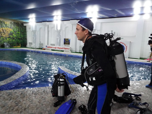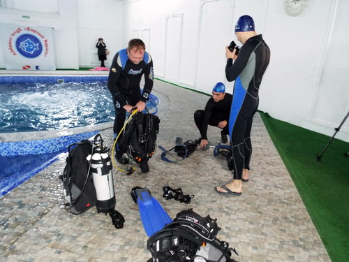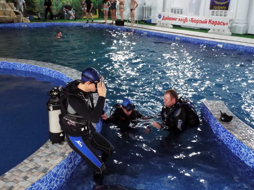 - Вообще, Международный день дайвера отмечается 12 октября, - говорит один из организаторов мероприятия, руководитель дайв-центра "Наутилус" Алексей Лысенко. - Но погода в этот день была плохая, поэтому решили провести его в последний день октября здесь, в бассейне. Кроме нас, в организации принимает участие также дайвинг-клуб "Борзый карась".