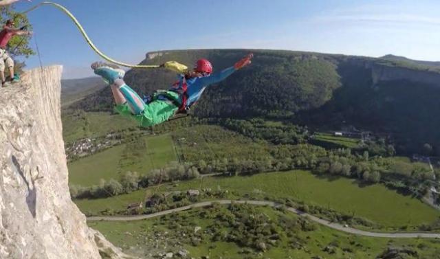 В поездке в Крым Евгений организовал прыжки со скалы близ монастыря Качи-Кальон, расположенного в Бахчисарайском районе. Известный челнинский прыгун объединил в своей команде 20 эктремалов из Перми, Набережных Челнов, Ижевска, Москвы, Ялты и даже Мариуполя. Прыгали с высоты 70 метров, всего группа совершила 40 прыжков. Эту поездку они организовали вместе с пермским прыгуном Федором Козловым: