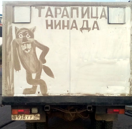 Многие жители Набережных Челнов уже смогли оценить рисунки из грязи на хлебовозках "Челны-хлеб". Создает их художник Алексей Валетов, творчески отмывая пыль с фургонов. Очередным подарком челнинцам стала поздравительная "открытка" с 23-м февраля.