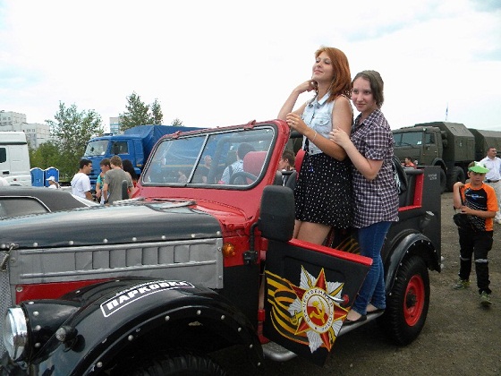 На площадке, посвященной 25-летию команды "КАМАЗ-Мастер", явно наблюдалось гендерное разделение по интересам. Мужчины всех возрастов не могли пройти мимо военной техники: мальчишки лезли заглянуть в  кабину, парни стучали по кузову и по-хозяйски заглядывали под него. Девушки прилипали к ретро-автомобилям. Гости праздника в Набережных Челнах с азартом фотографировались на всех экспонатах: и на раритетных автомобилях, и на трехколесных советских мотоциклах