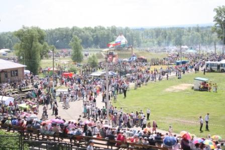 Народные гуляния продолжались с 10 утра и до самого вечера. На сцене выступали звезды татарской эстрады и танцевальные коллективы. Одновременно работали несколько площадок для детей и взрослых. Публика активно принимала участие в традиционных конкурсах: перетягивании каната, беге с коромыслом, борьбе мешками.Особый интерес вызвал турнир батыров. В национальной борьбе на поясах "курэш", как обычно, приняли участие и совсем юные мальчишки, и взрослые борцы. Каждый старался победить и получить суперприз - автомобиль. Победители в своих весовых категорях получили по итогам соревнований скутер, квадроцикл и 2 автомобиля.