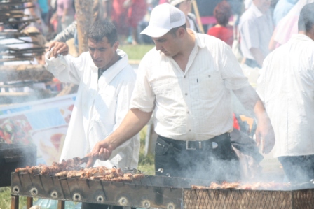 Самым ходовым товаром в этот день, как сказали торговцы, были шашлыки и холодный квас. Некоторые отдыхающие признались, что приехали на Сабантуй специально, чтобы покушать мясо на свежем воздухе. "Без шашлыка и праздник не праздник!" - говорили люди.
