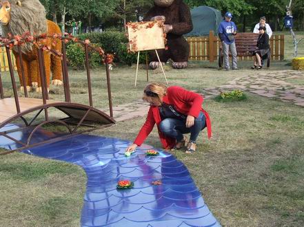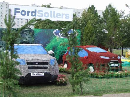 Из трех «разрешенных» тем нынешнего Фестиваля цветов (универсиада, экология, сказки) почти все участники, соревнующиеся в номинации «объемная композиция», выбрали сказки. Самым ходовым материалом оказался репейник, им загодя запасались на городских пустырях: бесплатно и хорошо держится. Им «обклеил» свои машины и Ford Sollers, впервые участвующий в подобном фестивале. «Заметьте, цвета трех наших представленных на празднике макетов машин перекликаются с флагом Татарстана», - сказали корреспонденту «Челны ЛТД» представители предприятия.