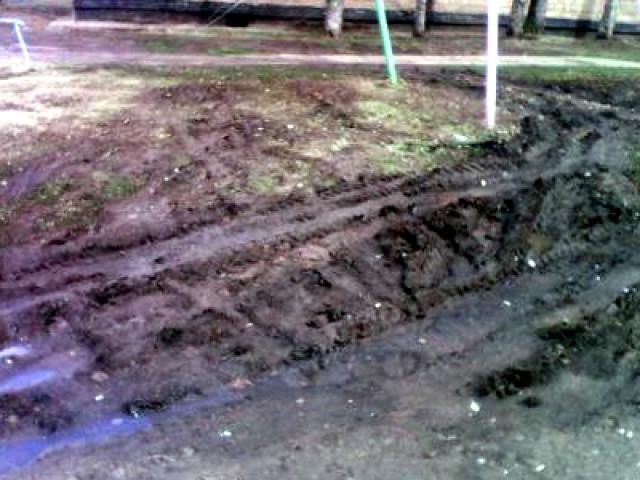 Грузовики, приезжающие на разгрузку, уничтожают газоны
