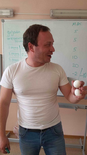 Молодой бизнесмен Илья Аксенов как никто знает, что это упражнение похоже на жизнь предпринимателя. "Здесь все, как на рынке, - говорит он, - за ограниченное время, используя опять же ограниченные ресурсы, ты должен создать продукт, новый товар или услугу. И шанс испытать их у тебя только один. Так как в жизни - если воображаемое яйцо в виде вашего продукта разобьется об отсутствие спроса или о другое обстоятельство, то другого шанса уже не будет".