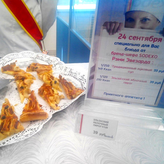 В 2009 году мировой лидер в сфере корпоративного питания компания Sodexo приступила к обслуживанию предприятий питания в автомобильной корпорации «КАМАЗ». В рамках сотрудничества со столовыми автогиганта из Набережных Челнов бренд-шеф Sodexo, обладатель Мишленовской звезды Реми Эвезард проводит мастер-классы для камазовских поваров. В августе этого года сотрудникам НТЦ во время обеда предлагали помимо традиционных блюд отведать приготовленные французским шеф-поваром ремулад из сельдерея с морковью и бланкет из курицы в грибном соусе. А на днях уже сотрудники дирекции "КАМАЗа" получили возможность опробовать луковый суп за 33 рубля и эльзасский яблочный пирог за 39 рублей.