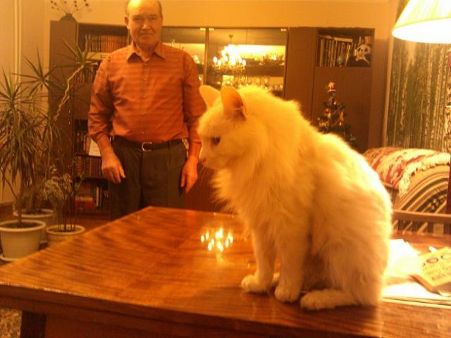 - Филимон чрезвычайно умный. Он знает, что ему можно, а что нельзя. Например, я не позволяю ему забираться на пододеяльник. Так он запрыгивает на кровать только, когда я постелю на пододеяльник одеяло. Запрыгнет и смотрит выпученными глазами. Выпученные глаза на его языке - это вопрос: можно или нет? Я говорю, сиди-сиди и он только после этого начинает заниматься своими делами: чистит лапы и так далее. Он очень чистоплотный. У него свой туалет, так он после каждого пользования орет благим матом, что означает: "Идите, уберите!" Мы вымоем его тазик, а он еще придет и посмотрит, хорошо ли вымыли, - рассказывает супруга Александра Ивановича Елизавета Анисимовна.