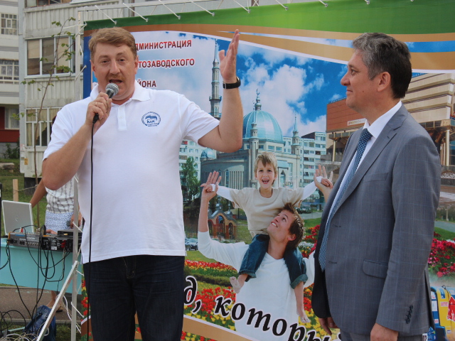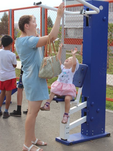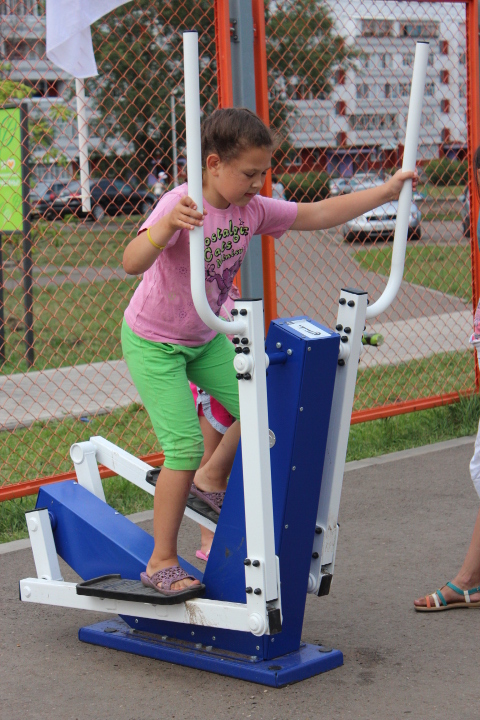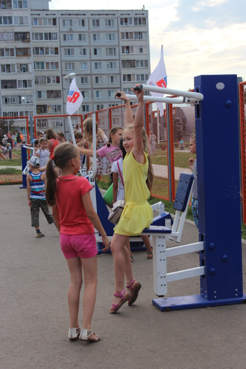 На открытие площадки приехал руководитель исполкома татарстанского отделения «Единой России» Андрей Кондратьев, многим известный, как Президент и ведущий республиканского КВН. По его словам, проводя в Татарстане Универсиаду и другие крупные спортивные соревнования, нельзя забывать о массовом спорте для формирования здорового подрастающего поколения. Кондратьев поинтересовался у детей, нравятся ли им тренажеры – ребята «дали добро». Правда, не все смогли разобраться, как правильно на них работать – некоторым взрослым пришлось показать все на собственном примере.