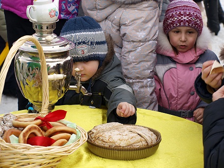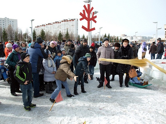 Сегодня в городе тысячи горожан пришли на народные гуляния в парки и на площадь у мэрии. Народ кормили блинами, развлекали конкурсами и песнями. Игровые пятачки были окружены детьми. Добытчики сладких призов играли в боулинг на снегу, прыгали через скакалку, метали веники, вспоминали поговорки про блины, на скорость собирали пирамидки, перетягивали канат. Самая активная и напористая публика окружила площадку, на которой шли конкурсы на скоростное поедание блинов. Мечтающие поучаствовать в блинных боях дети чуть не затаптывали ведущих. Несколько сот блинов съели участники в ходе соревнований! Еще несколько сот раздали просто так в рамках рекламной акции торговой сети.
