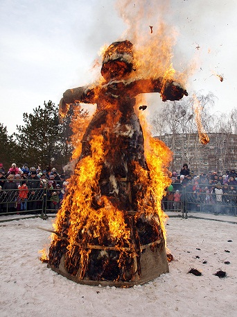 Вторым, и главным на празднике, центром притяжения было чучело зимы. Дети с родителями загодя занимали места у ограждения, чтобы увидеть во всех деталях, как сгорит соломенное чучело. Ожидая начала огненного шоу, подростки лупили по чучелу снежками, а когда появились работники горзеленхоза с факелами и канистрами, некоторые захлопали: «Зажигай». Зима быстро вспыхнула и сгорела в считанные минуты.