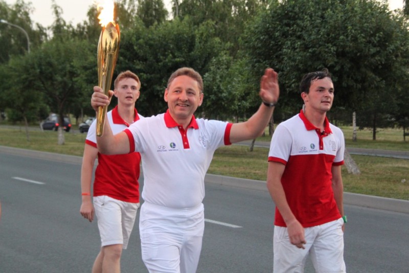 Поскольку информационным партнером XXVII Всемирной летней Универсиады - 2013 является "Авторадио", в Набережных Челнах от имени этой популярной радиостанции факел на своем этапе пронес Абдулхак Батюшов - депутат Горсовета, кандидат экономических наук и генеральный директор крупнейшего городского медиахолдинга "СТВ-МЕДИА", в который входит и "Авторадио".