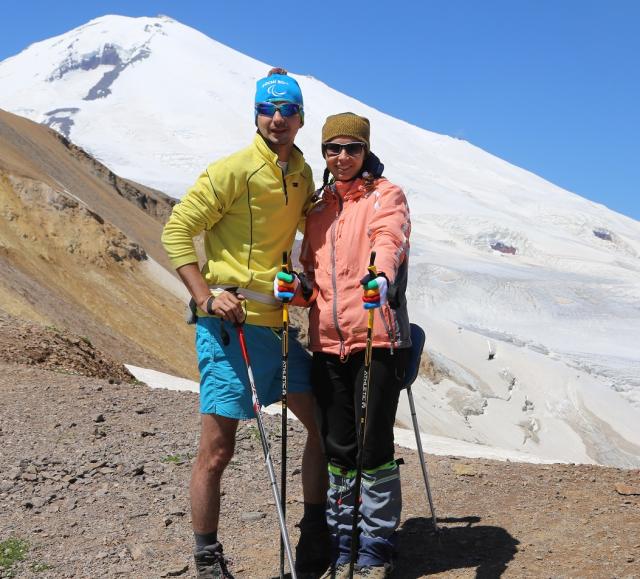 На снимке: Николай Зотов при восхождении на Эльбрус (с племянницей)