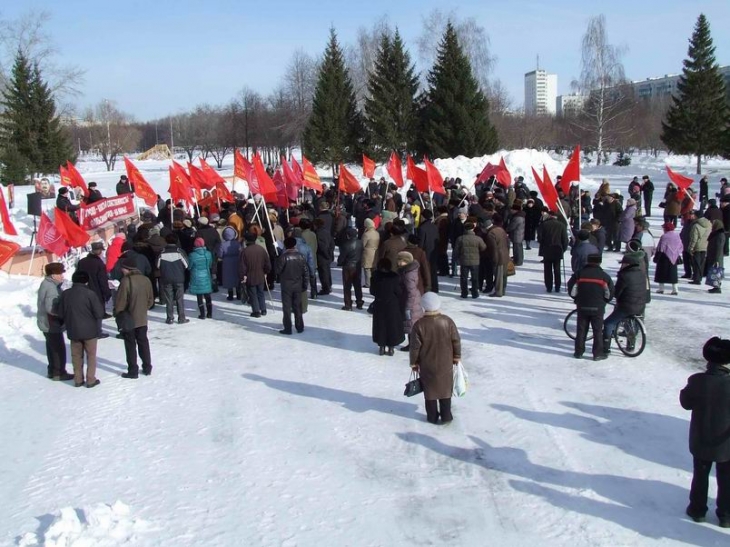 Около 200 челнинских коммунистов пришли сегодня в парк Победы на свой праздничный митинг