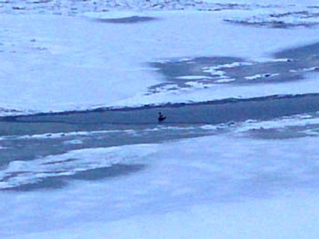 Заведующий Музеем природы "Национальный парк "Нижняя Кама" Ринур Бекмансуров просит помощи рыбаков и охотников в поимке лебедя, который плавает в полынье на реке Кама возле Соколок.
