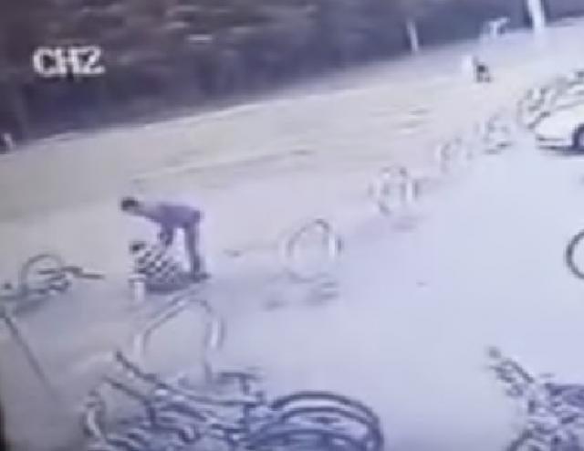 Падение велосипедиста на парковке парка Прибрежный сняли на видео