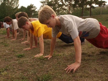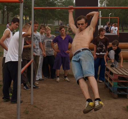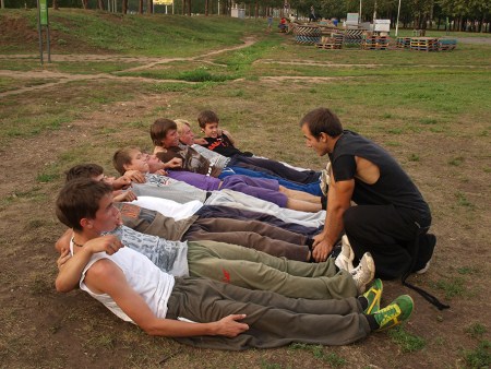 В экстрим-парке на Гренаде трейсеров поделили на три команды, и три инструктора работали поочередно с разными группами, показывая разные элементы. Слабину не давали. Один ошибался – напрягали всех. Крынин командует: «Рассчитаемся на первый, второй, третий». Начинается расчет, кто-то сбивается. Евгений объявляет: «У нас тут появился четвертый. Всем упор лежа!». Шеренга в 40 человек отжимается, снова начинает расчет. «После второго первый пошел? Упор лежа!». Устав, из строя выбегает какой-то мальчуган. И снова команда: «Упор лежа!». Евгений Крынин падает на землю с остальными: «Не люблю отжиматься за косяки других».